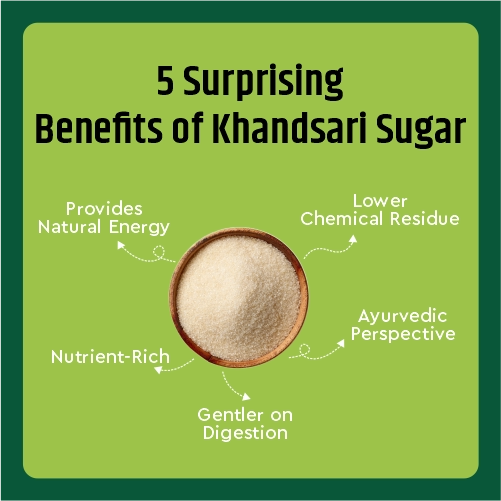 Khandsari Sugar is a natural, minimally processed sweetener made from pure sugarcane juice, retaining its rich taste and essential nutrients. Its golden texture and authentic flavour make it perfect for everyday cooking, beverages and traditional sweets.